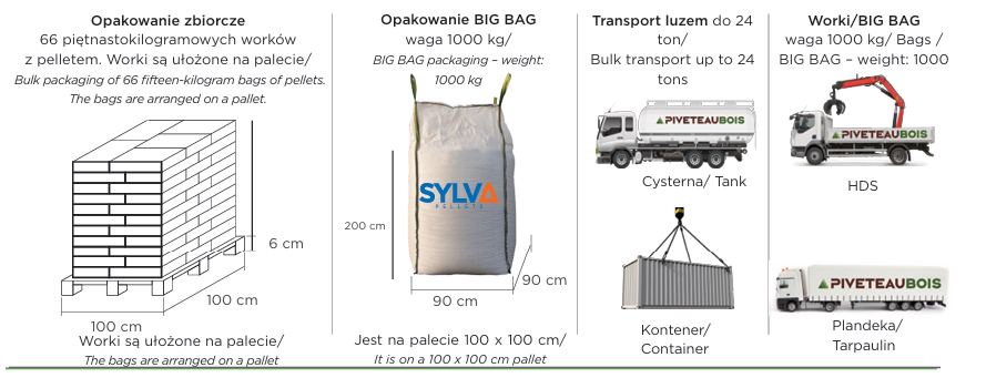 | Wartość opałowa / Calorific value | ≥ 5,06 kWh/kg | ≥ 4,6 kWh/kg | ≥ 4,6 kWh/kg |